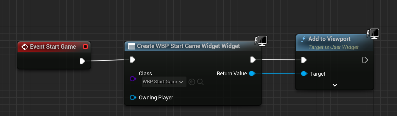 이어서 Create Widget 함수를 통해 해당 Widget을 가져오고, Add to ViewPort 함수를 통해 화면에 보여주게 된다.