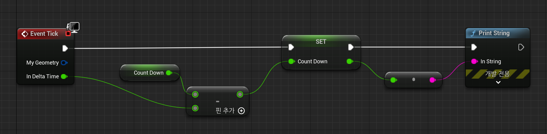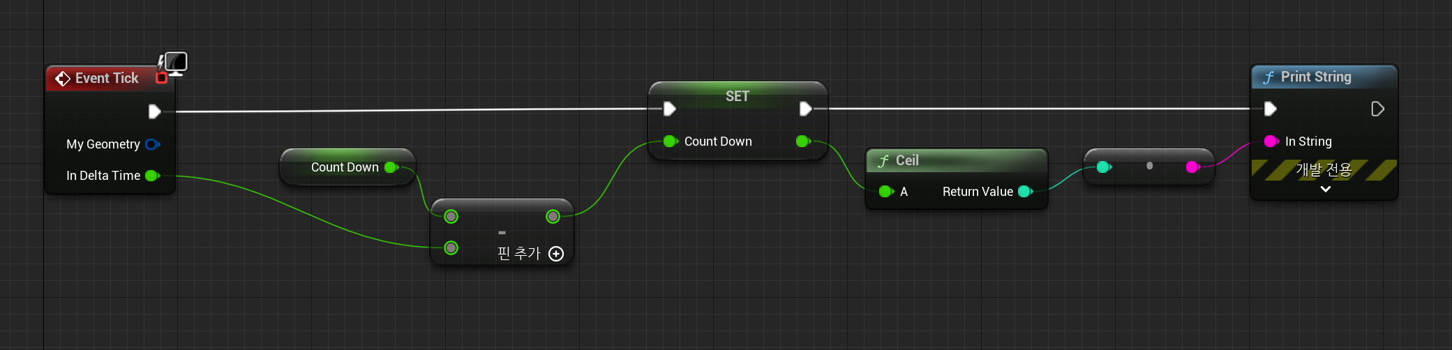 Event Tick에 있는 Delta Time을 이용하여 매 프레임마다 카운트 다운의 값을 감소시켜가며 출력하게 된다.