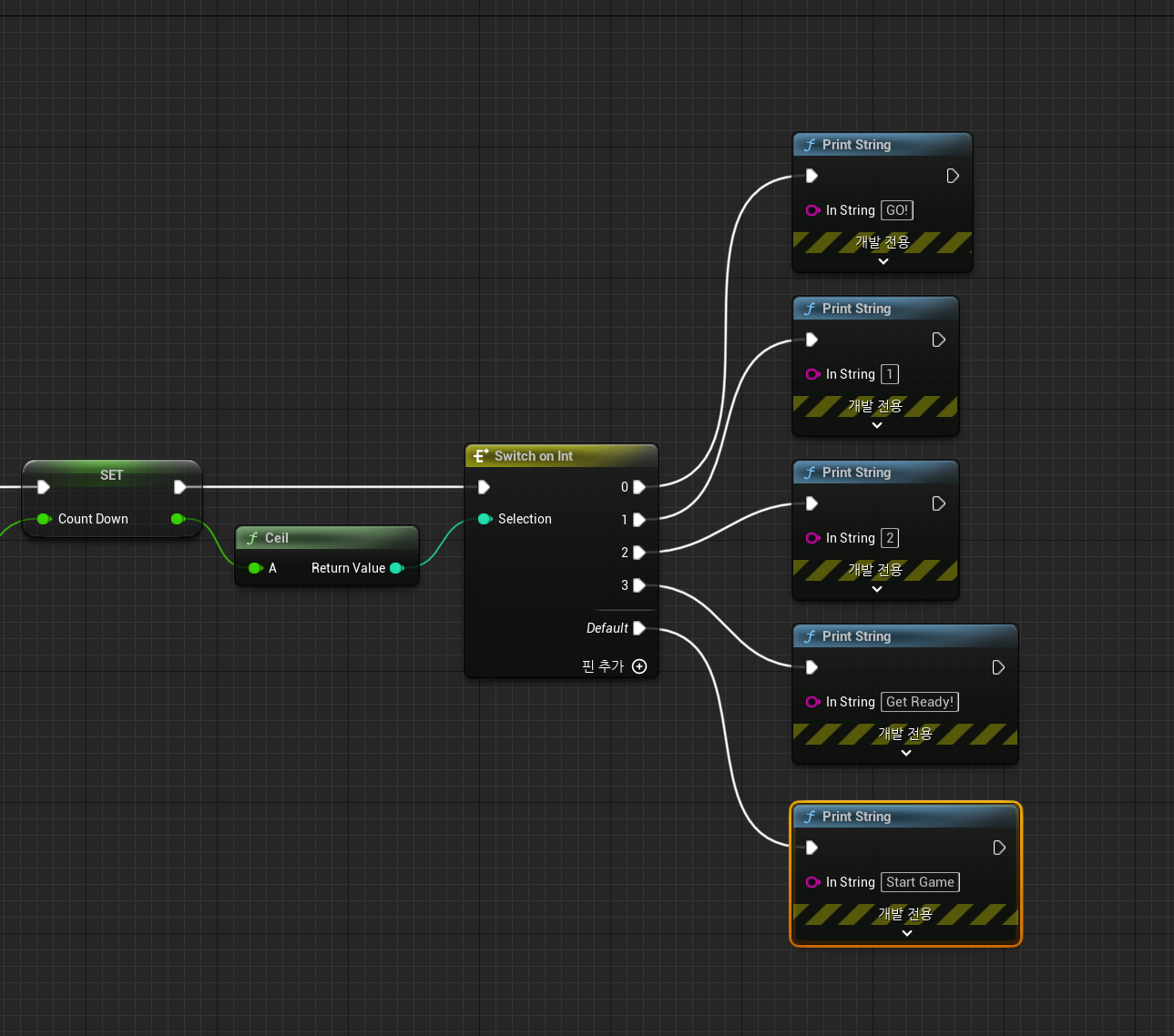 기본적으로는 Start Game 을, 3 일때는 Get Ready를, 2와 1은 숫자 그대로, 0은 GO! 를 출력해보자.
