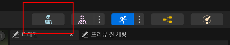 우측 상단의 해골 캐릭터 모양을 누르면 스켈레톤 메시를 확인할 수 있다.