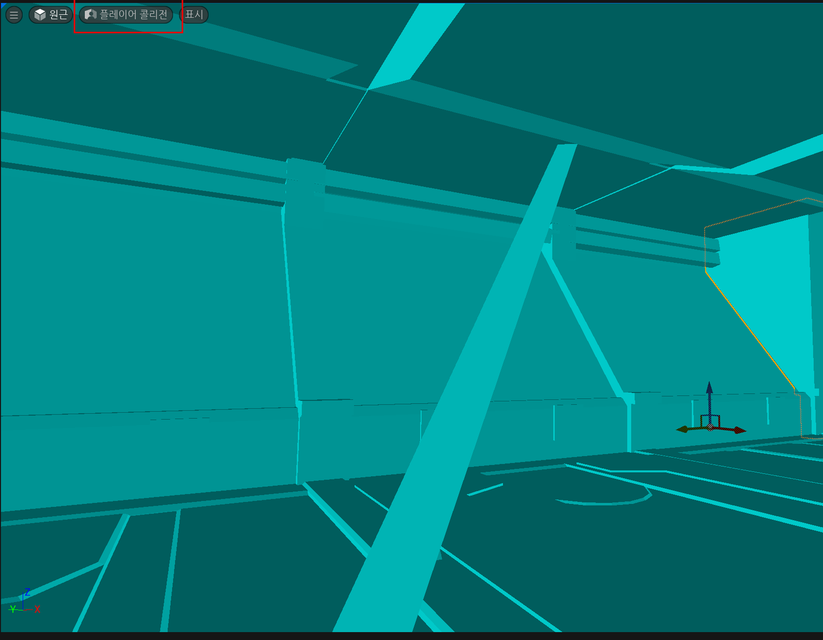 이는 콜리전에 문제가 있는 것으로 화면을 플레이어 콜리전으로 바꾸면 해당 콜리전을 볼 수 있다.
