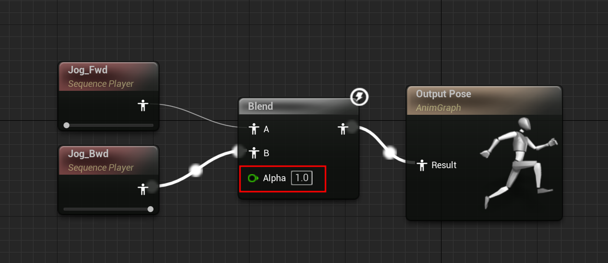 우리는 이제 알파 값에 변수를 할당하고, 해당 변수를 통해 런타임 동안에 값을 수정하여 애니메이션을 전환하게 된다.