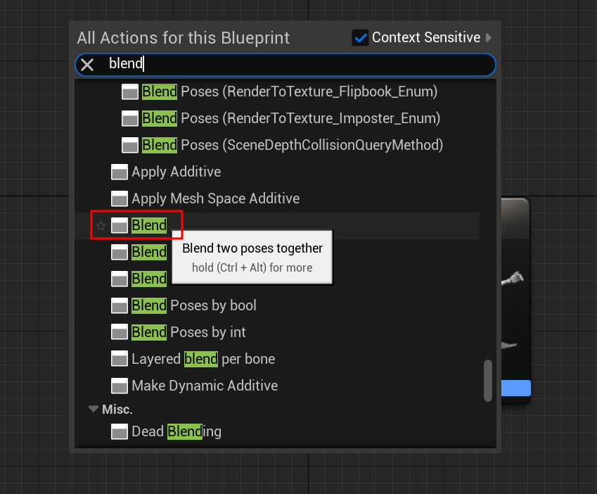 만약 값이 0.5와 같은 중앙 값이라면, 해당 애니메이션 2개를 섞은 동작을 실행하게 된다.