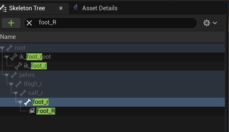이는 좌측 스켈레톤 트리에서 선택할 수 있다.
