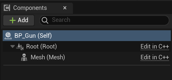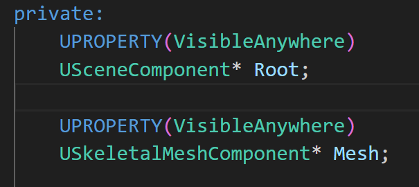 다음으로 해당 총의 루트가 될 SceneComponent와 이에 어태치하여 사용할 Mesh를 선언해주자.