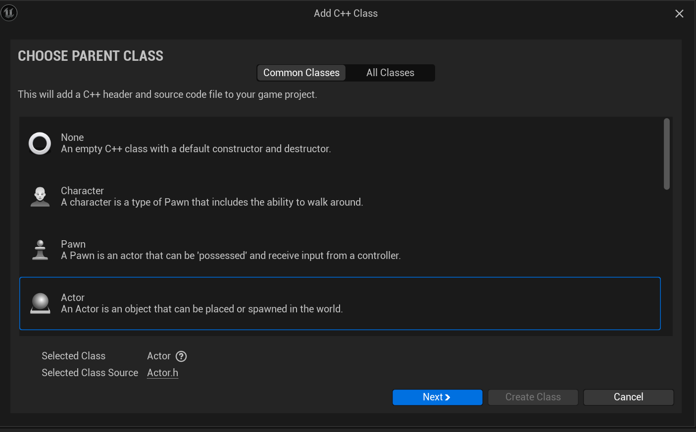 먼저 총을 생성하는데 총은 캐릭터나 폰의 기능이 필요없으므로 단순 Actor 클래스로 생성하게 된다.