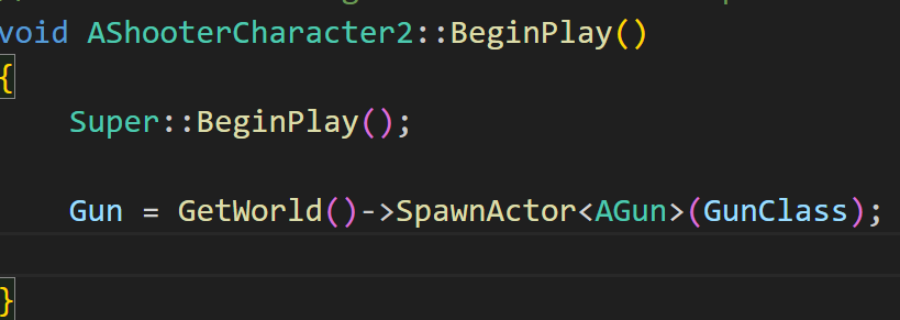 총은 게임이 시작되자마자 캐릭터가 가지고 있어야 하므로 BeginPlay에서 해당 함수를 작성하게 된다.