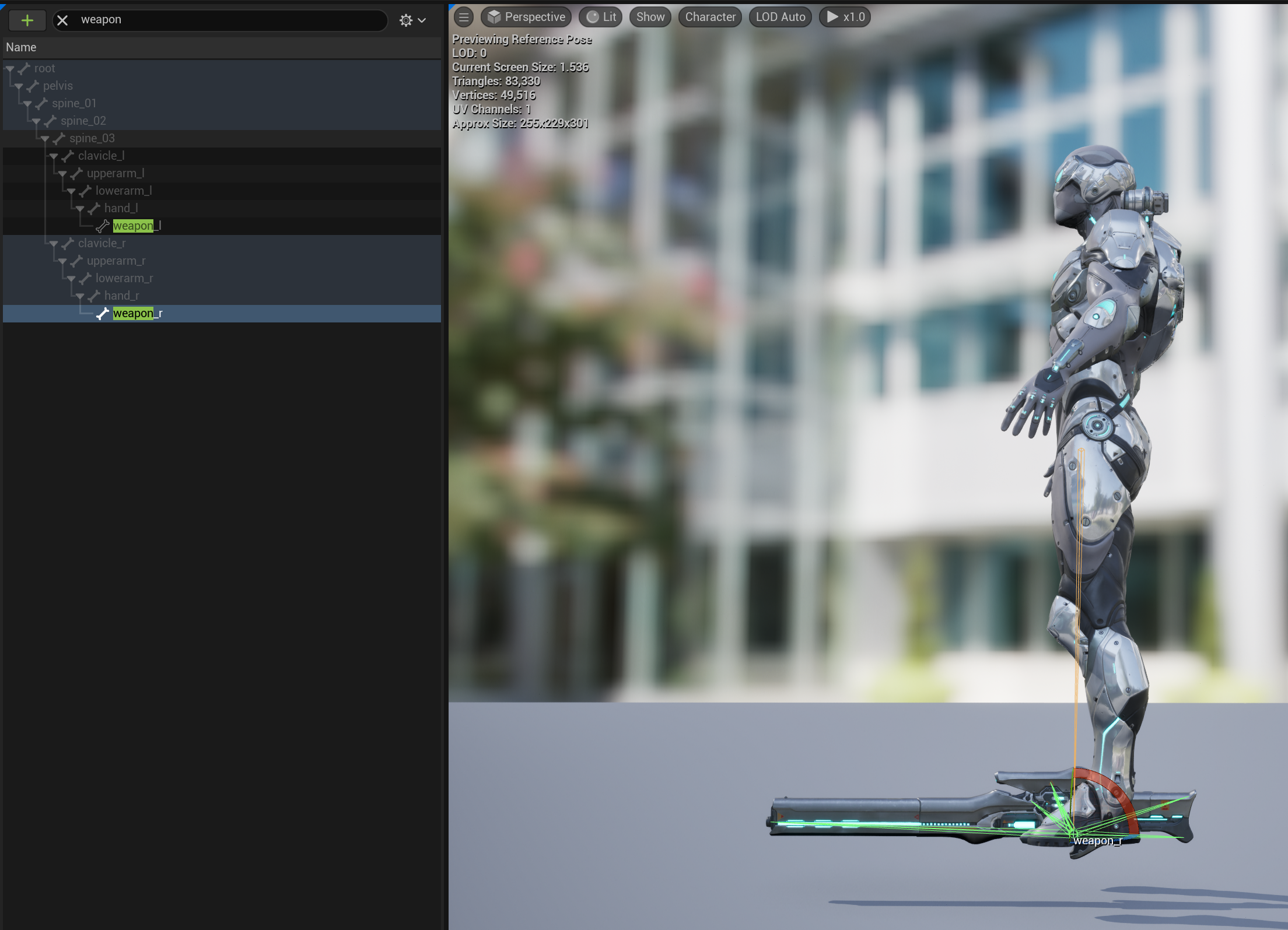 우선 총이 스켈레톤 메시의 어느 부분에 해당하는지 체크해보자.