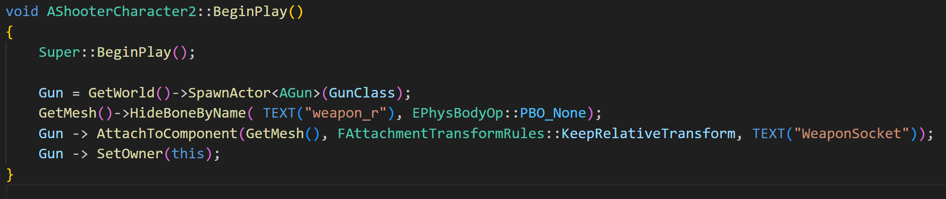 이제 컴파일하고 실행해보면 총이 제대로 스폰된다.