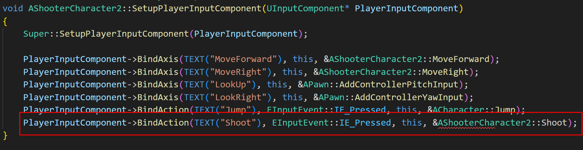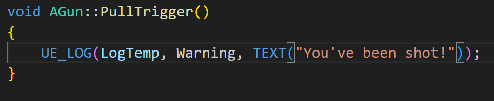 우선 함수의 경우 캐릭터 클래스에 이미 Gun에 대한 포인터가 있으므로 해당 값을 통해 PullTriger 함수를 호출해준다.