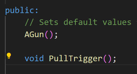 이를 위해서 우선 Gun 클래스에서 트리거 함수를 작성한다.