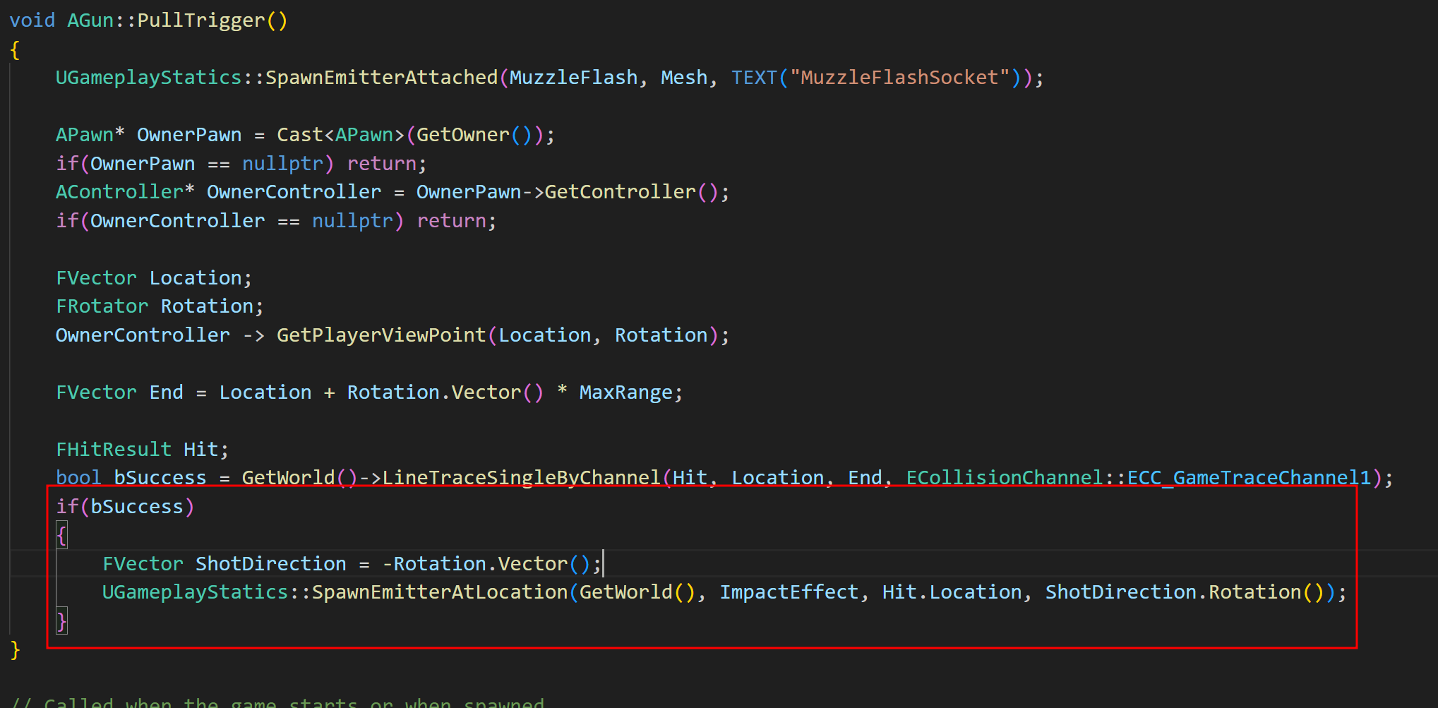 따라서 발사 방향인 Rotation.Vector()에 -을 붙여준 방향을 할당하게 된다.