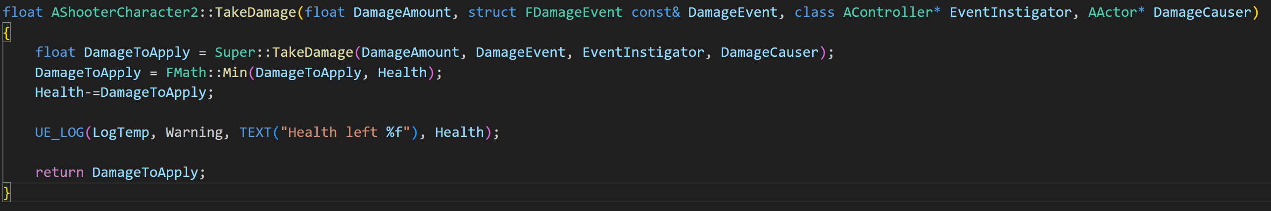 이제 선언했던 TakeDamage 함수를 구현해보자.