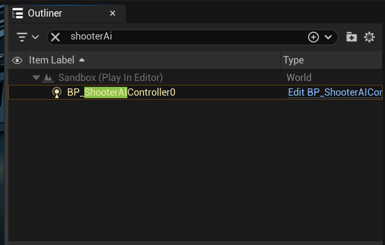 이제 플레이를하고 아웃라이너에서 해당 AIController가 검색되는 모습을 볼 수 있다.
