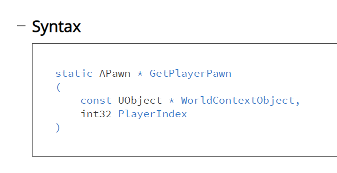 이는 UGameplayStatics에 속한 GetPalyerPawn 함수를 통해 얻을 수 있다.