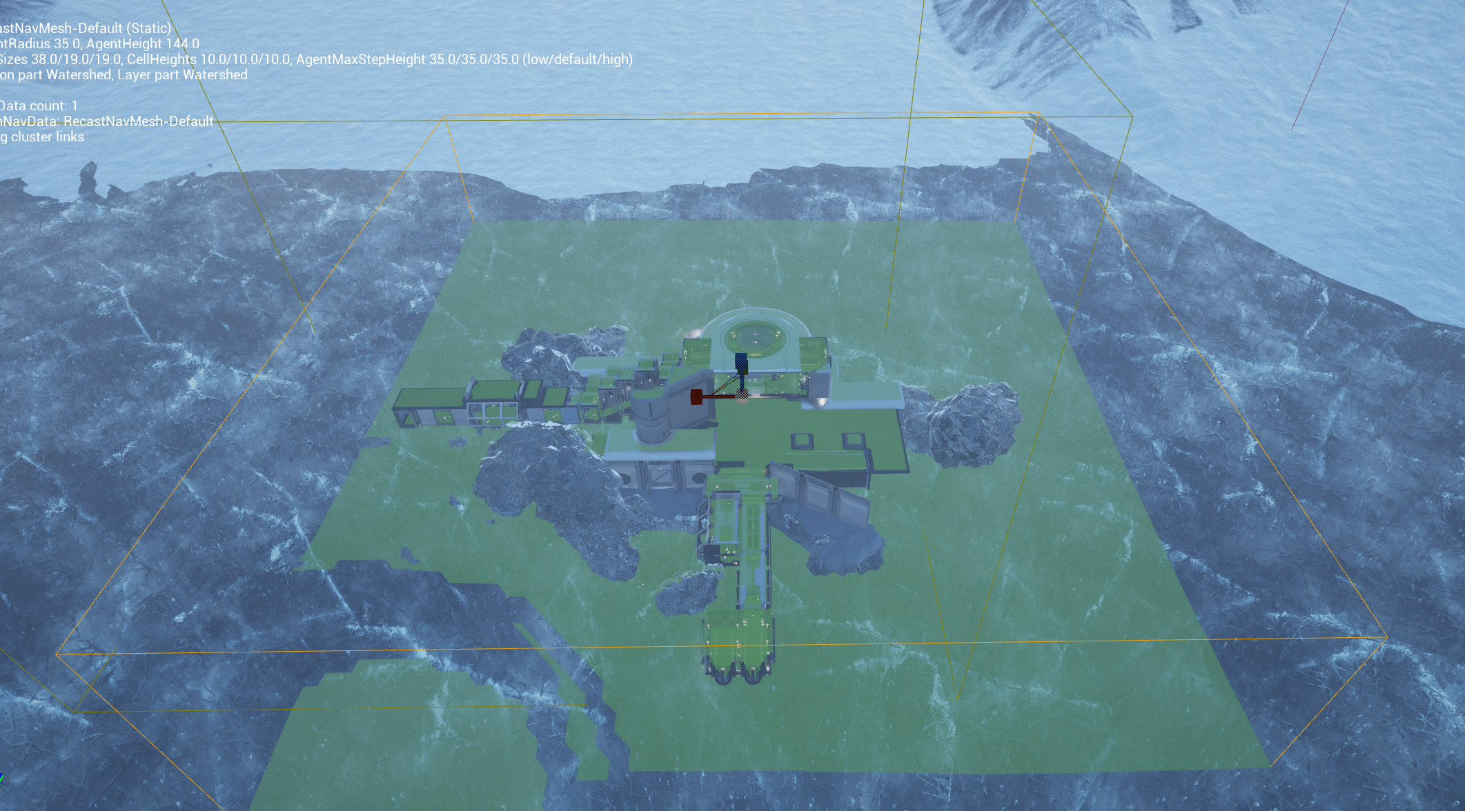 해당 메시 구역 내 경로를 계획하면 AI가 그 경로를 따라 움직이게 된다.