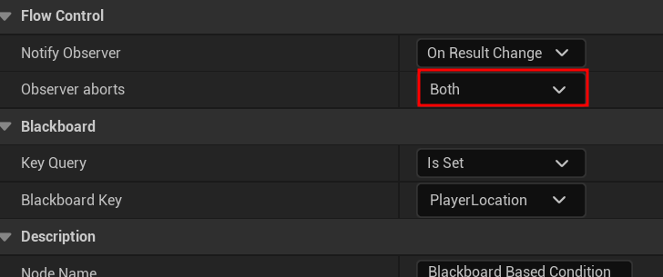 lower priority 기능을 선택하면 블랙보드 조건 참일시 다른 작업 멈추고 해당 조건을 실행하게 할 수 있다.
