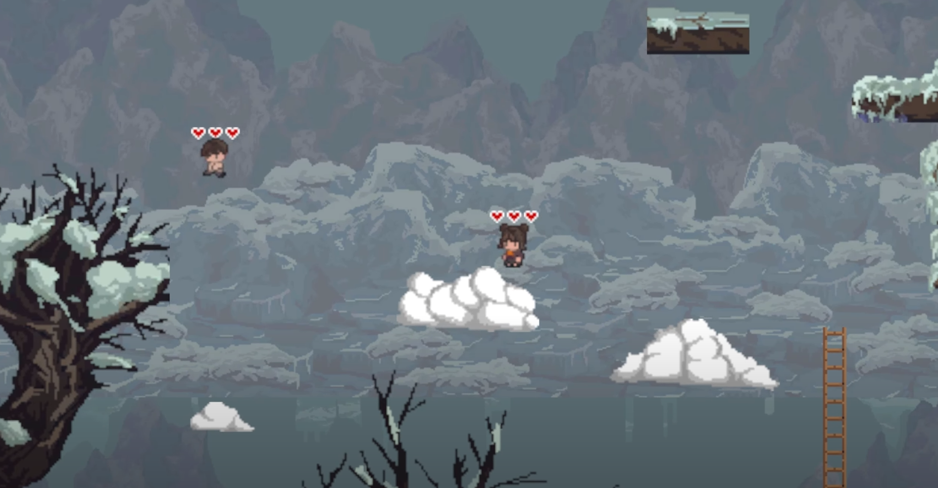 플레이어 2명이 구름 블록에 위치하면 해당 구름이 위로 올라가거나 아래로 내려간다.