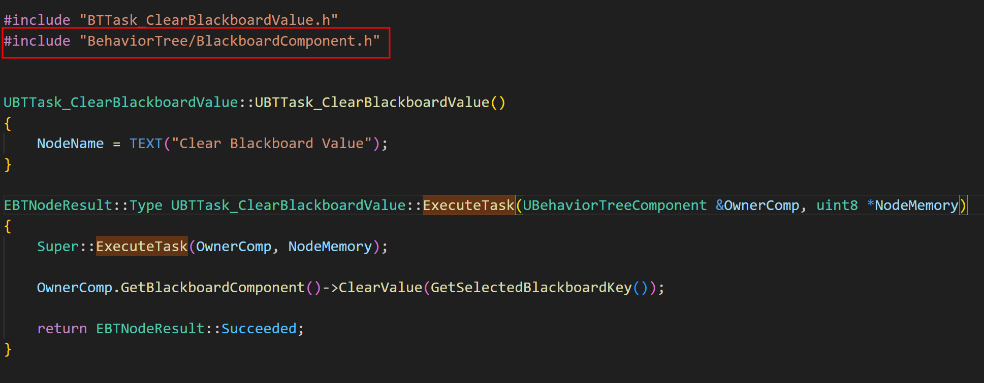 #include "BehaviorTree/BlackboardComponent.h" 에 속한 함수로 GetBlackboardComponent 함수 및 ClearValue 함수를 사용한 적이 있다.