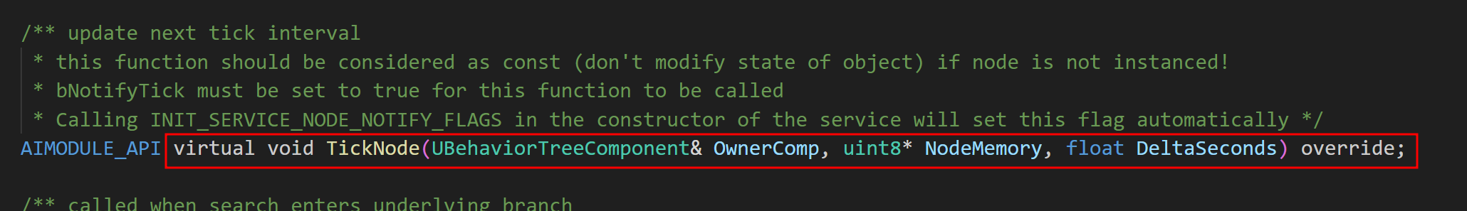그리고 BTSerivce에는 기존 Tick 기능을 하되, 매 프레임이 아닌 일정 간격으로 호출하는 TickNode 함수가 있다.