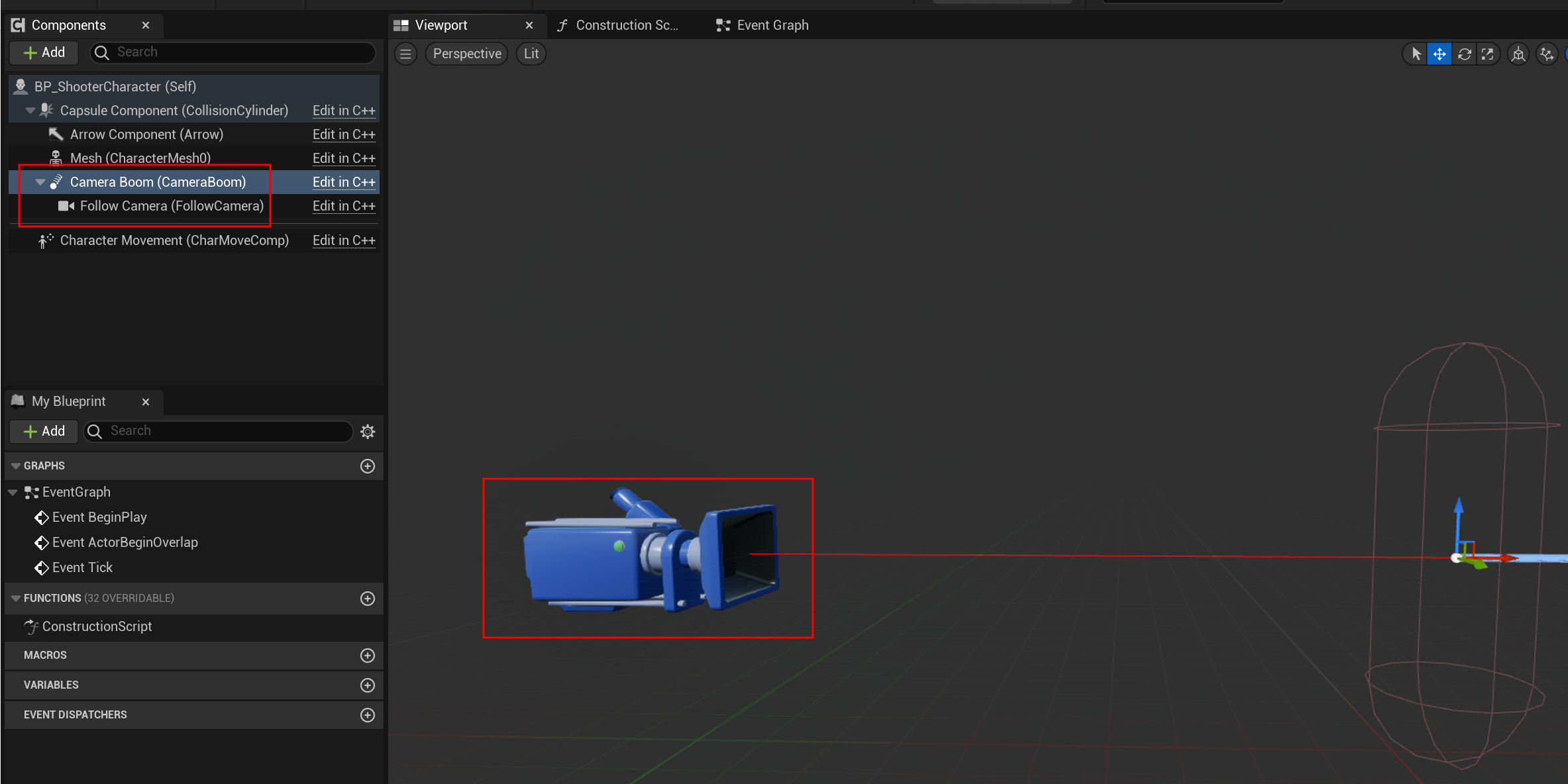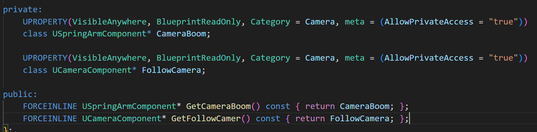 이제 카메라 또한 SpringArmComponent와 같은 방법으로 생성해주자.