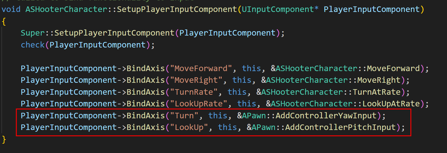 여기서는 곧바로 APawn에 있는 AddController(Yaw/Pitch)Input 함수를 바로 사용해주면 된다.