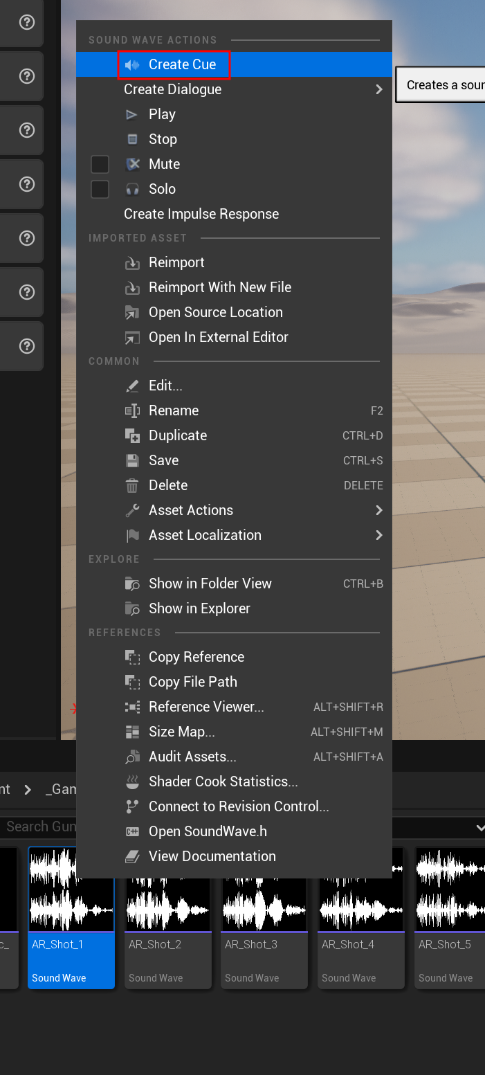그리고 해당 파일을 기준으로 사운드 큐을 만들어주자.