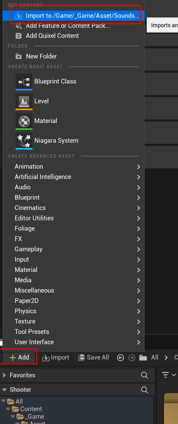 사운드 에셋은 강의 첨부된 자료를 사용한다.