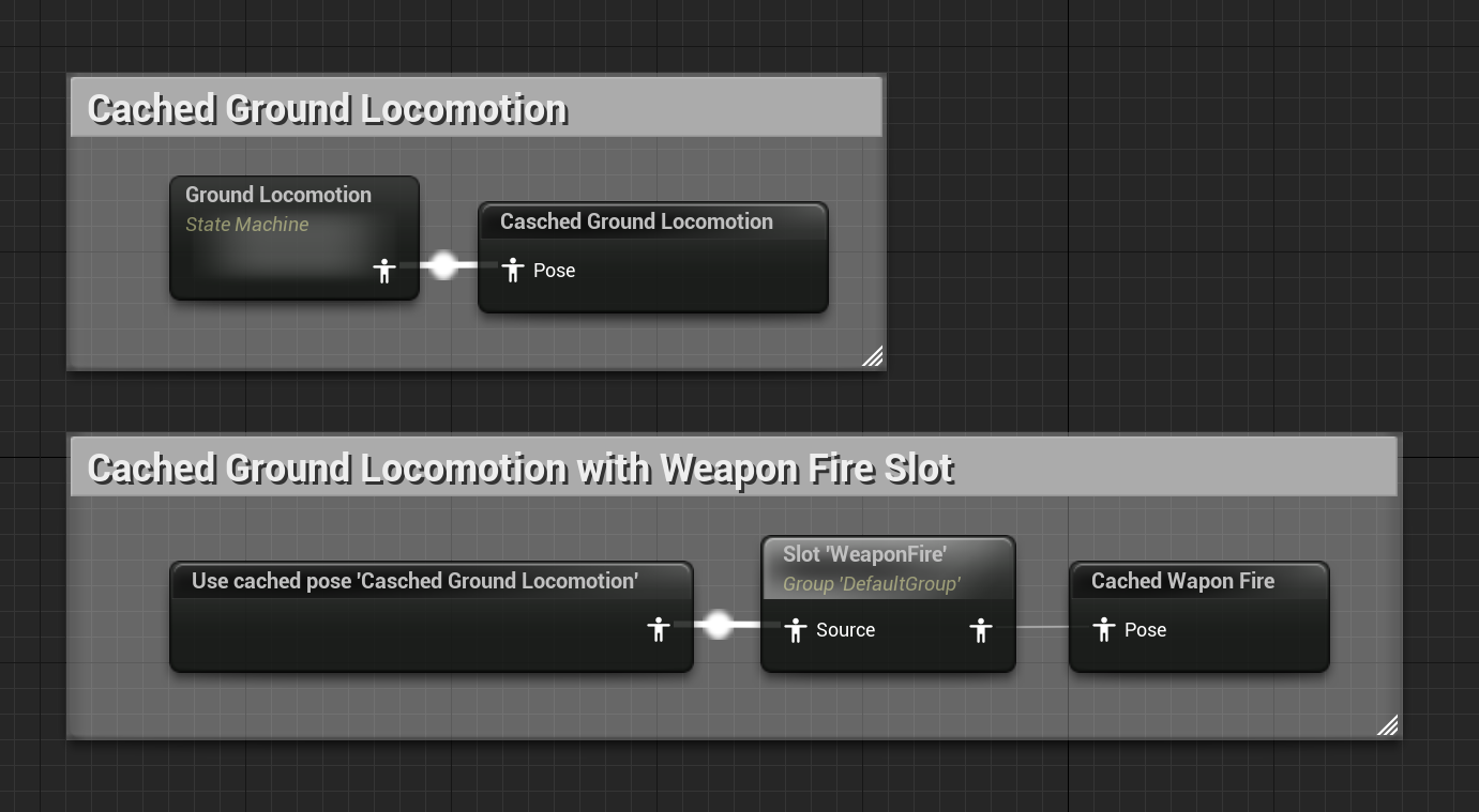 우리가 blend 할 대상은 기존 Ground Locomotion에 대한 애니메이션과, 사격이 포함된 애니메이션이다.