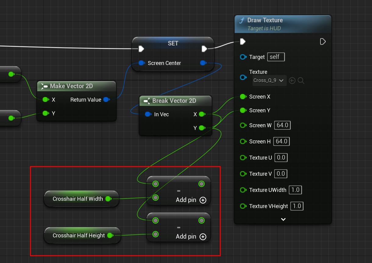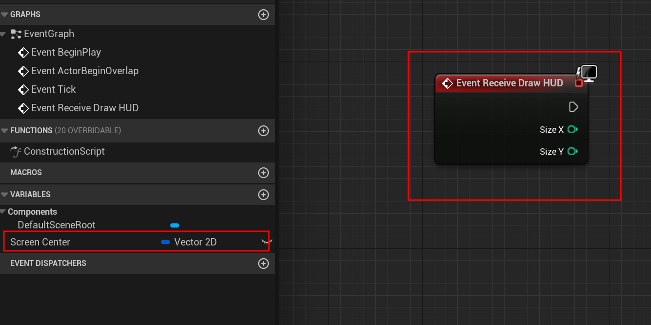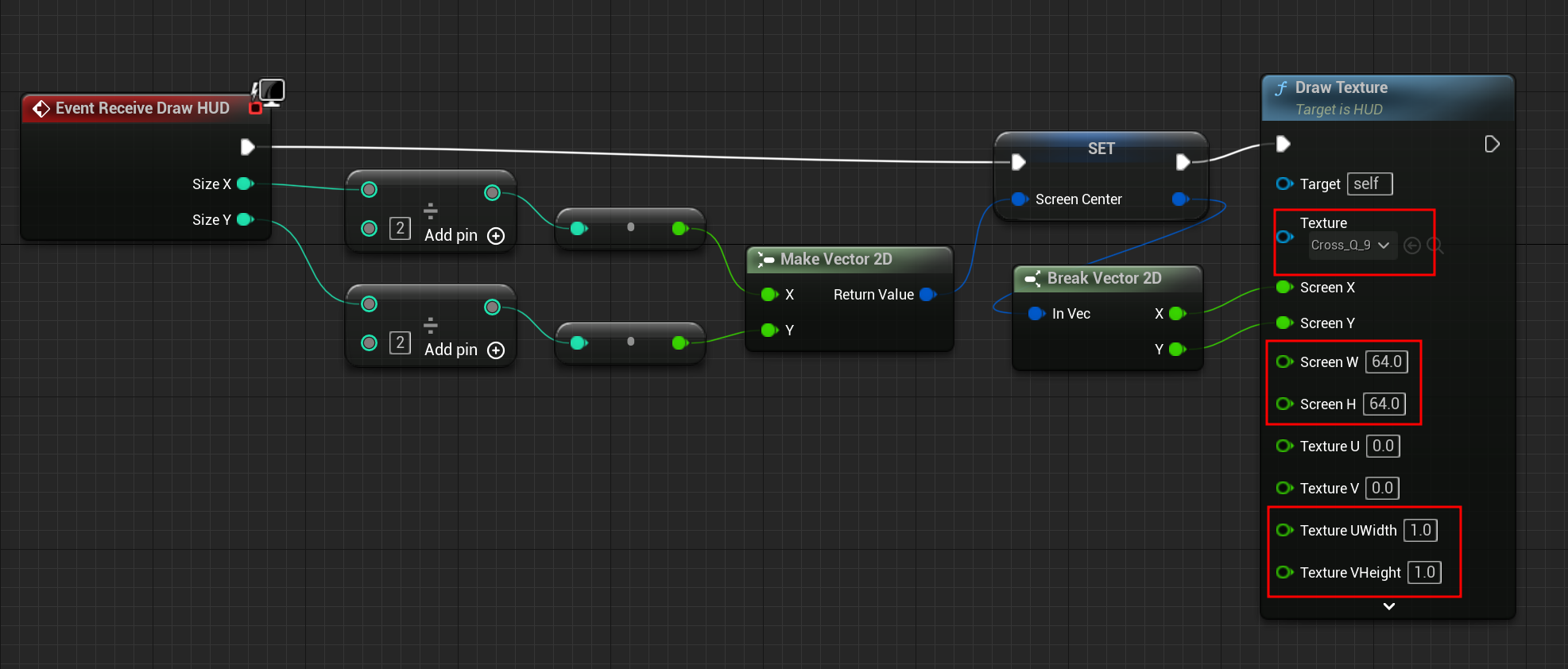 기존 x, y 값을 반으로 나누고 Vector 2D에 맞게 float로 변환하여 Screen Center 값으로 세팅 해주자.