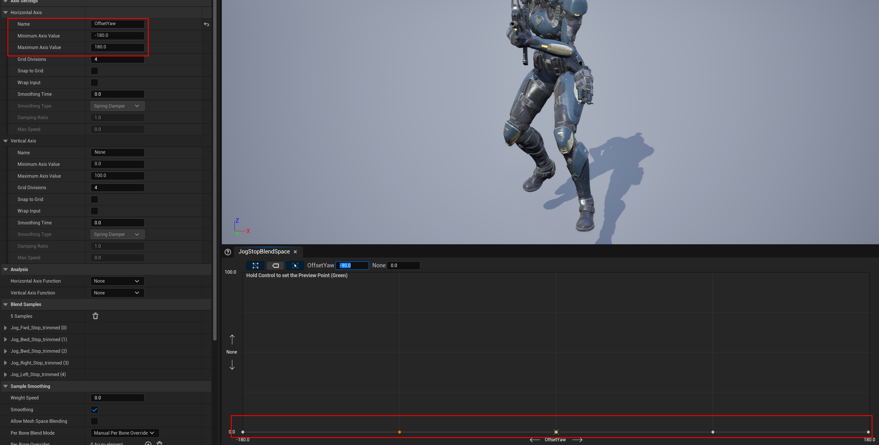 이어서 Jog Stop에 대한 블렌드 스페이스이다.