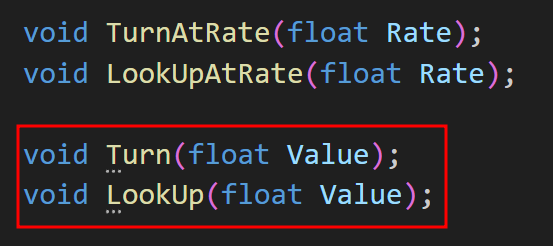 기존에 AddControllerPitchInput와 같은 함수로 간단하게 했던 것을 직접 함수를 생성하여 대체해주자.