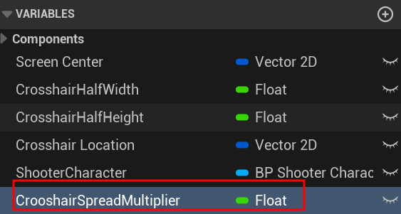 이제 Shooter Chracter를 통해서 Crosshair Spread Multiplier를 얻기 위한 Getter 함수를 가져오고,