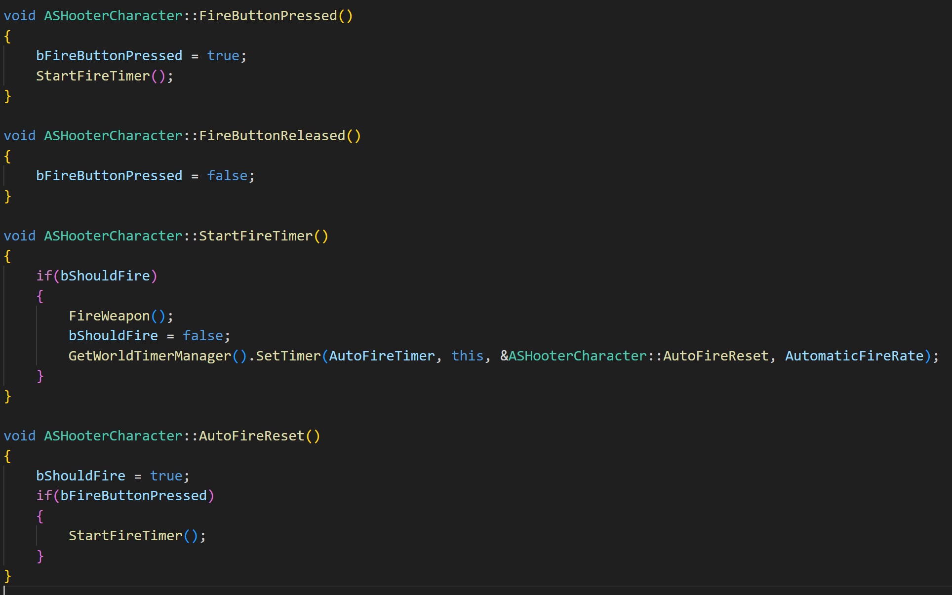 FireButtionReleased() 함수는 반대로 bFireButtonPressed 변수를 false로 만들어줄 것이다.