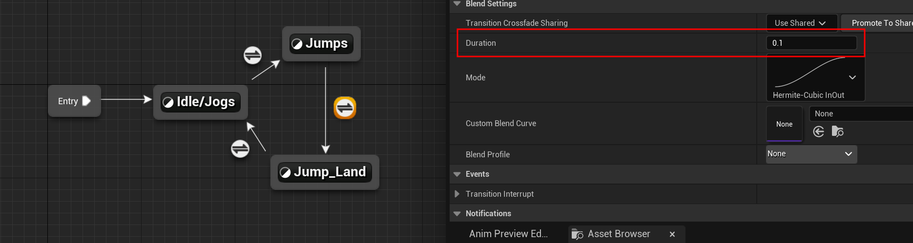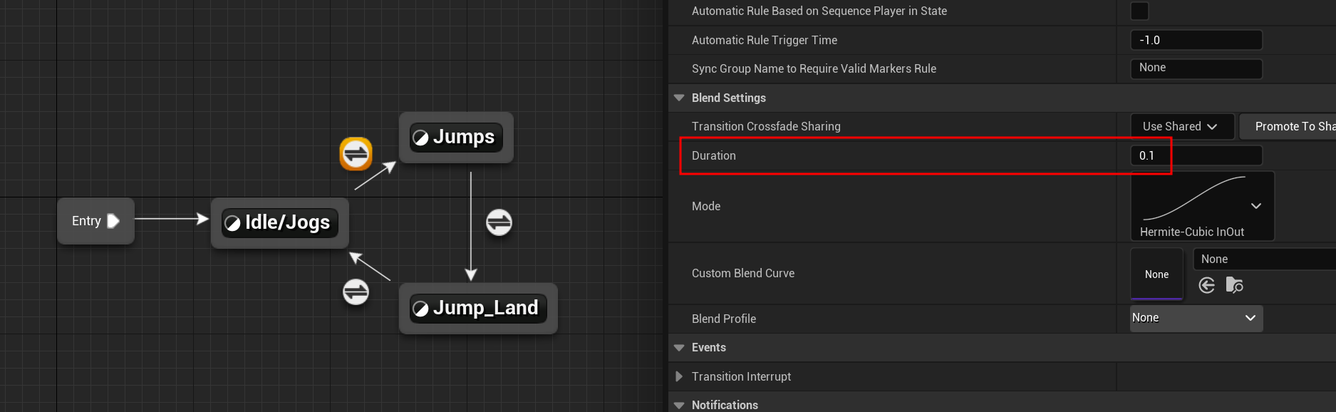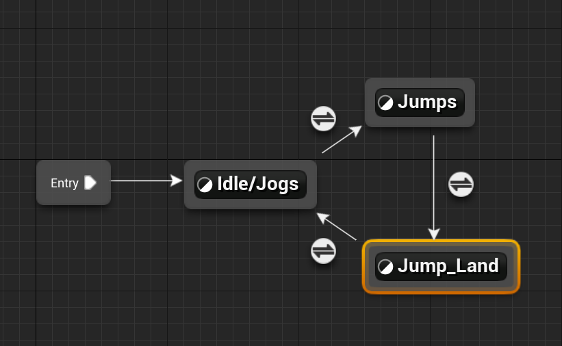 착지 도중에도 여전히 In Air 상태인데, Idle/Jogs로 확실히 넘어가지 않고 Jumps로 넘어가는 사태가 발생할 수 있다.