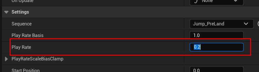 마지막 Jump_PreLand 애니메이션 같은 경우 재생 속도가 너무 빨라서 다소 조정해주었다.
