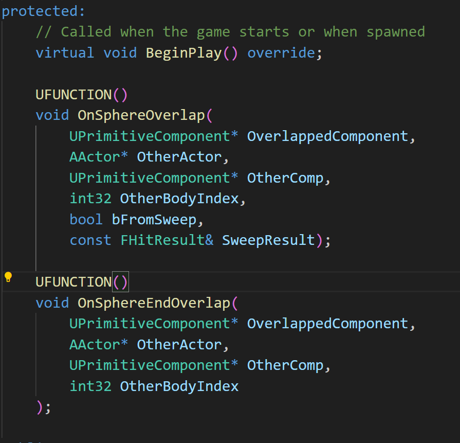 언리얼에서 콜백함수로 사용되기 때문에 제대로 바인딩되기 위해서 UFUNCTION()을 선언해주어야 한다.