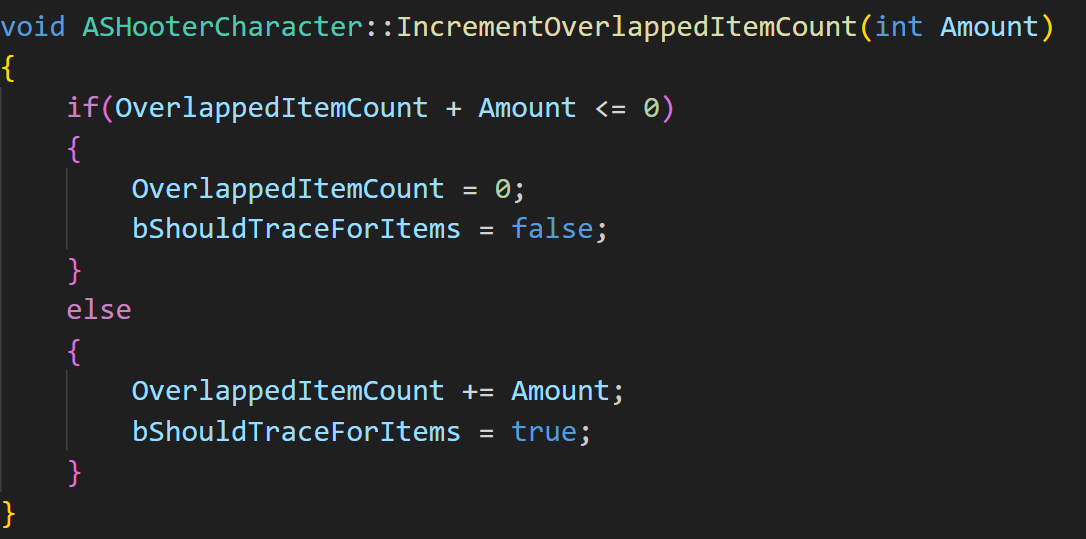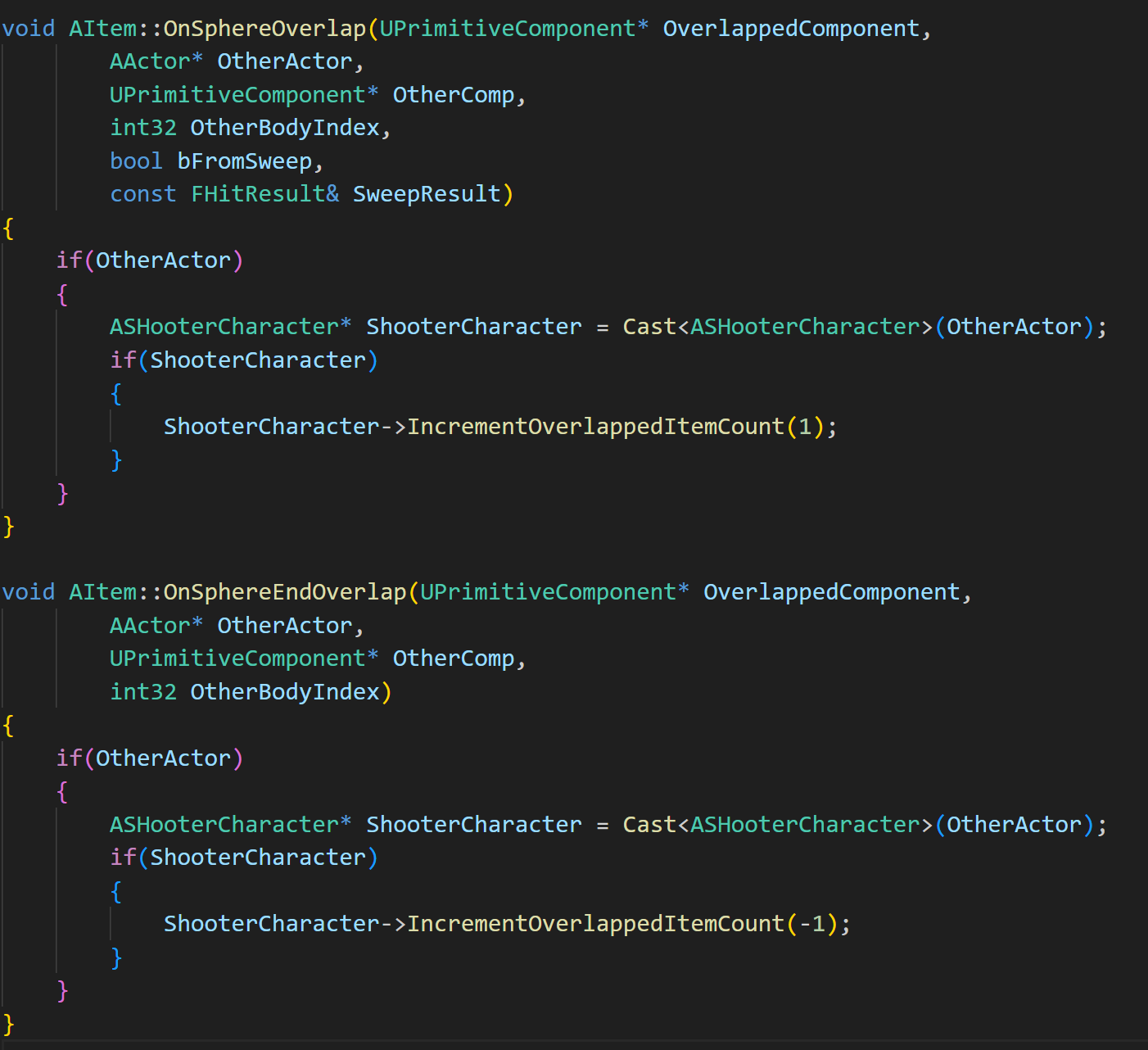만약 오버랩된 다른 액터가 존재한다면 IncrementOverlappedItemCount 함수에 접근해서 카운팅을 해주고,