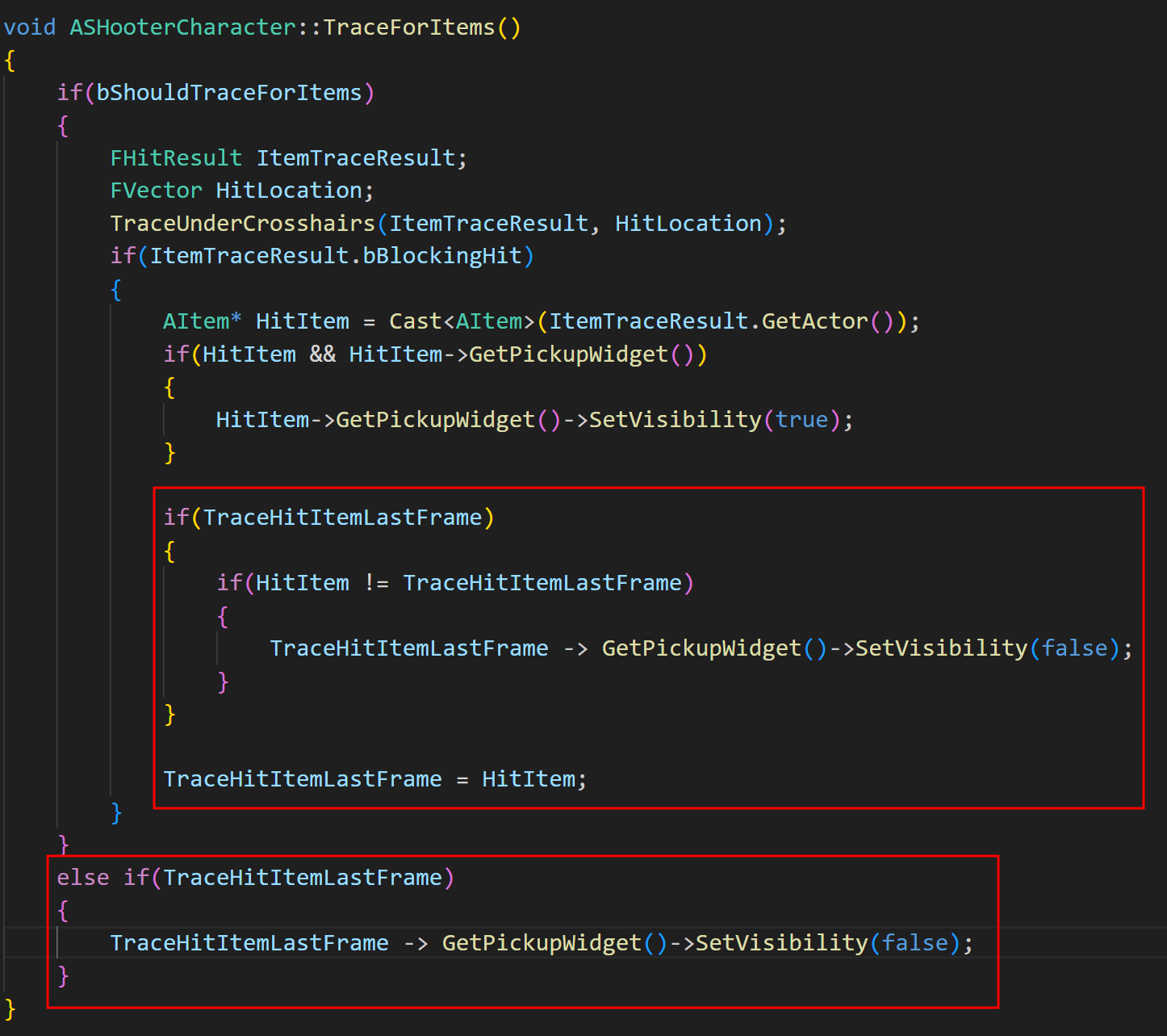 TraceForItems() 함수에서 해당 변수에 HitItem을 저장해주자.