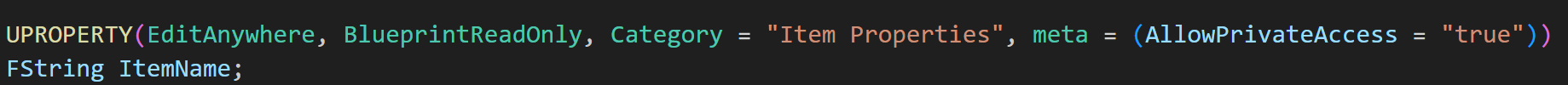 ItemName을 위한 FString 변수를 선언하고 초기화해주자.