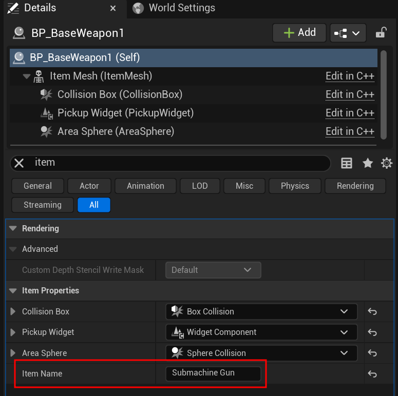 이는 블루프린트 클래스와 메인 디테일 패널에서 이름을 변경할 수 있다.