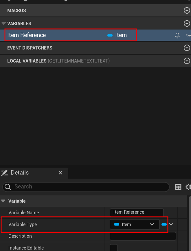 다음으로 Item Reference를 위한 변수를 선언해주자.