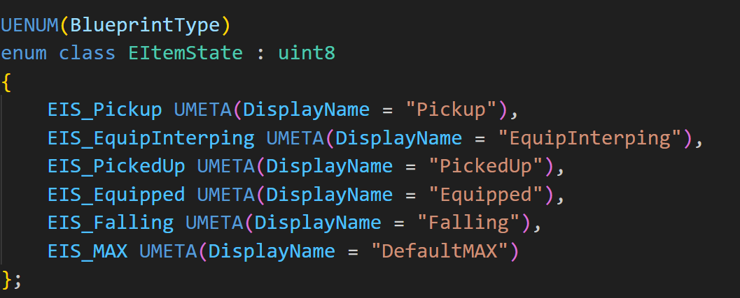 EItemState를 활용하여 무기의 상태에 대해 다루게 된다.
