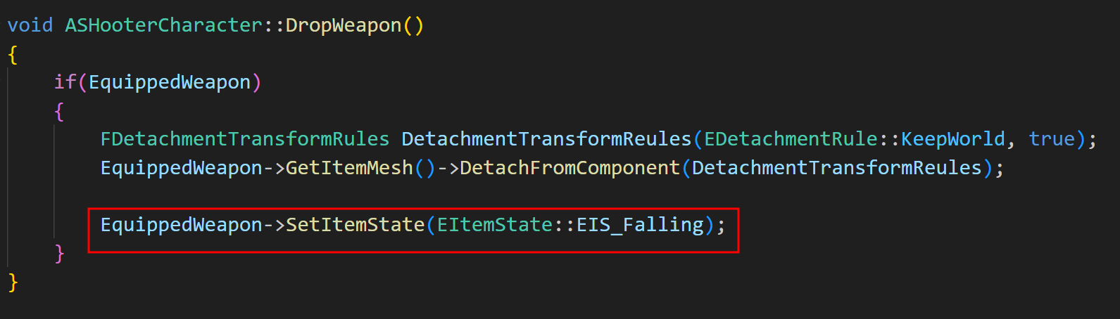 이제 해당 상태 할당을 DropWeapon() 함수에서 해주자.