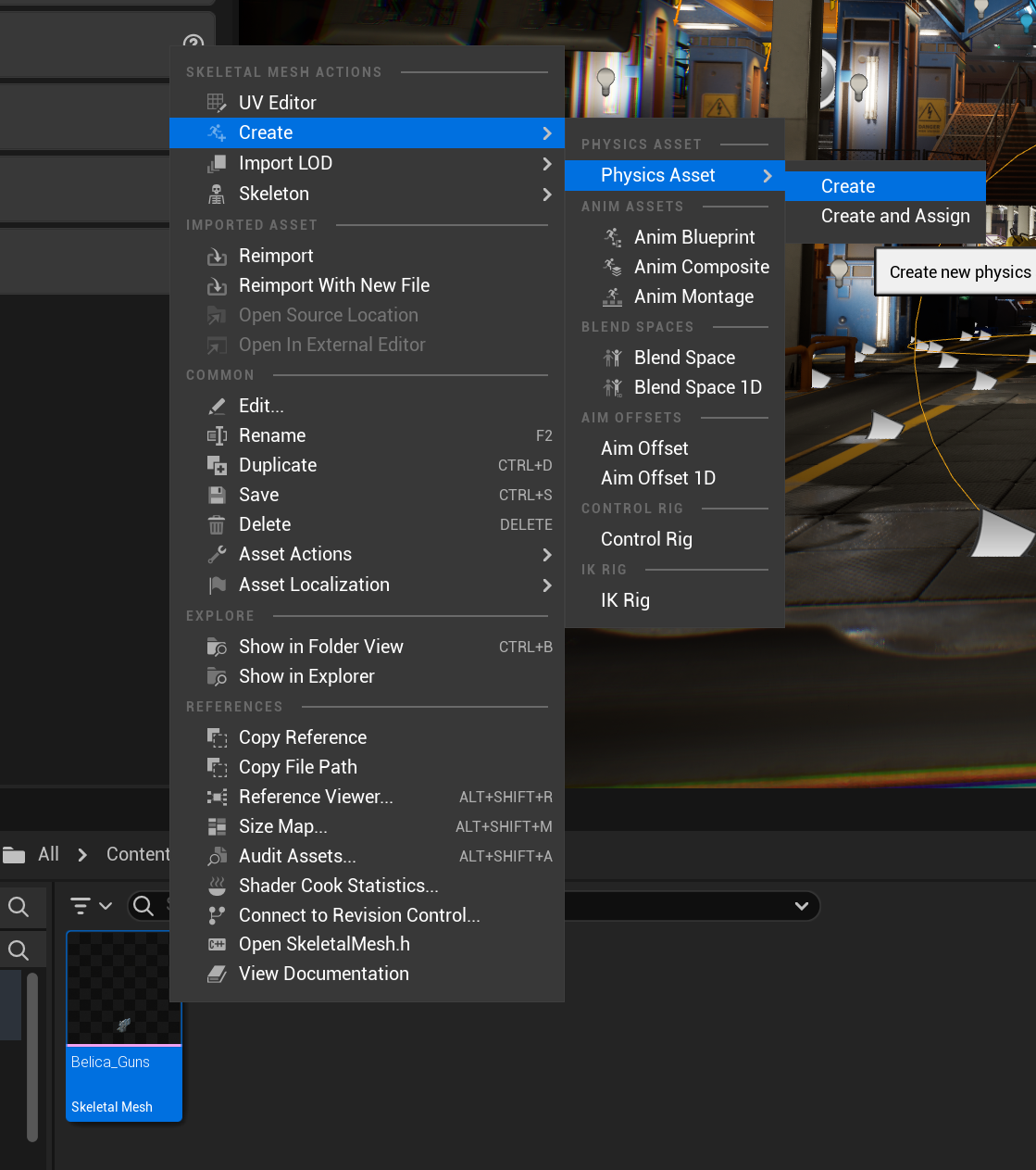 우선 기존 Belica_guns를 토대로 물리적 에셋을 만들어줄 것이다.
