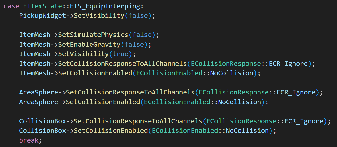 SetItemProperties() 함수에 EIS_EquipInterping case를 구현해주자.