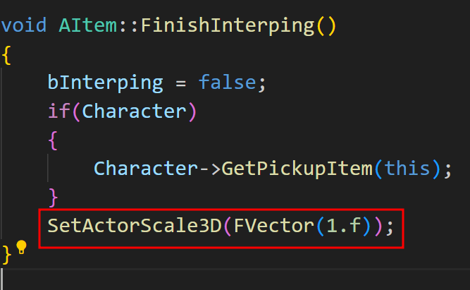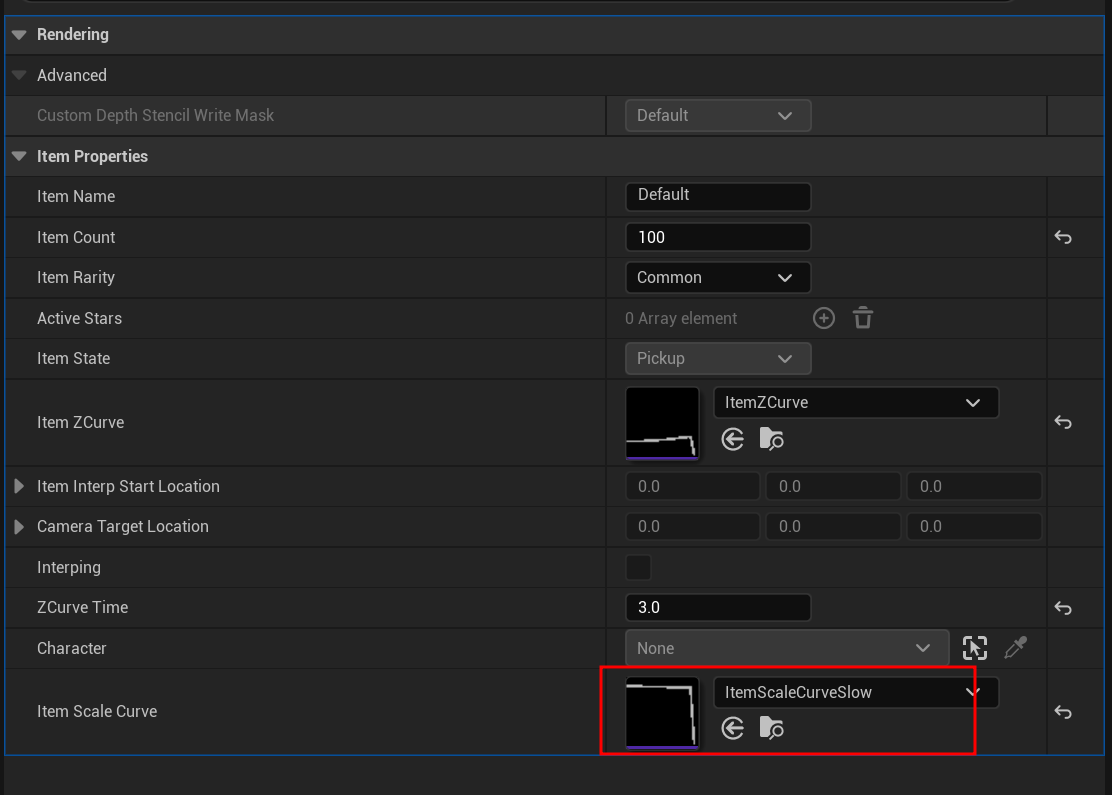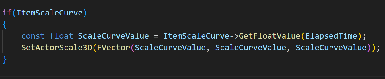 해당 커브를 ItemInterp() 함수에서 경과시간에 따른 Value 값을 얻고 이를 토대로 Scale을 해주자.