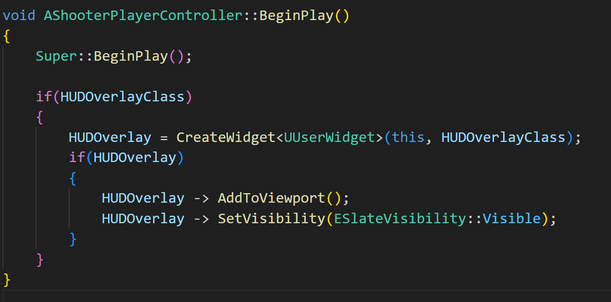 플레이어 컨트롤러 클래스에서 BeginPlay() 함수와 위젯을 위한 변수들도 생성해주자.