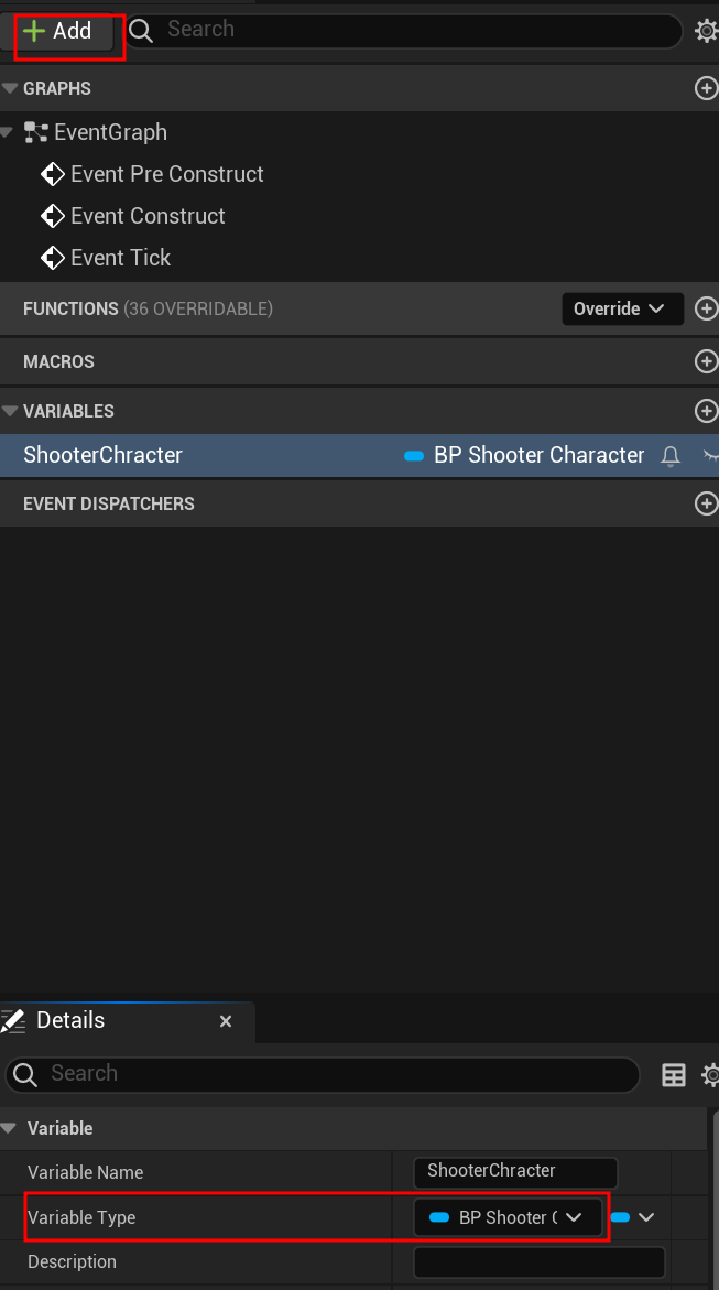 먼저 해당 위젯의 designer 탭에 들어가서 ShooterCharacter 변수를 만들어주자.