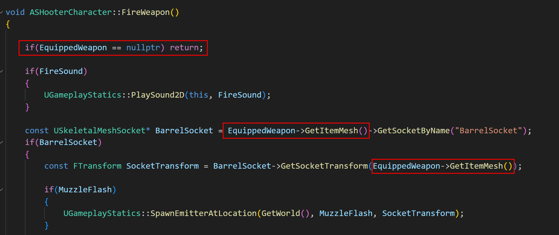강의를 따라해서 이렇게 했지만, 기존 그대로 GetMesh() 함수를 이용한 코드도 총구 위치에 이상이 없었다.